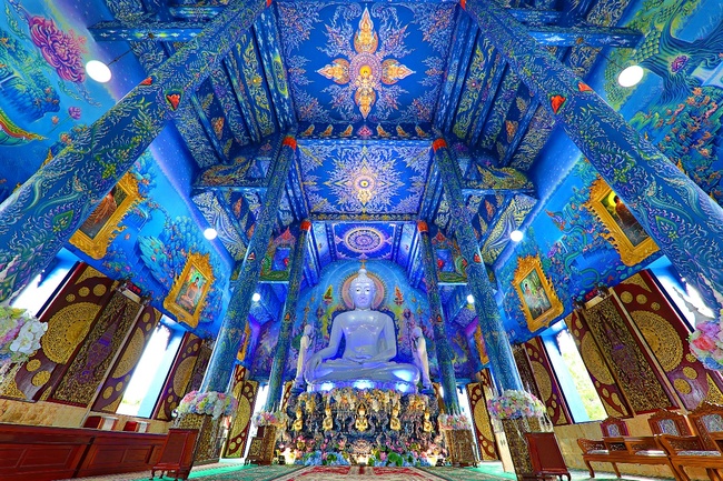The stands-out blue temple gives you the feeling of tranquility, decorated with fine architecture and murals. Visitors pay homage to the Buddha images and stop to snap souvenir photos.